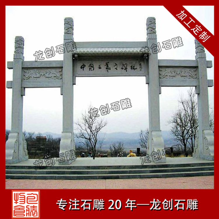 2、現代石雕牌坊要注意和實地環境的結合。現代化的石雕牌坊建筑可以是在休閑區域,也可以是在商業廣場,還可以在景區內建造,常見的就是在仿古街的入口處修建石雕牌坊,既能夠體現古色韻味又能夠吸引游人的關注。如村莊牌坊的修建,就要和村莊的風俗文化相結合,只有這樣才能和當地環境文化融為一體。無論是在哪里進行建造石雕牌坊,一定好和當地的環境進行有機的結合,這樣才能讓建筑和環境融為一體,才能讓建筑為周圍的景色帶來亮點。