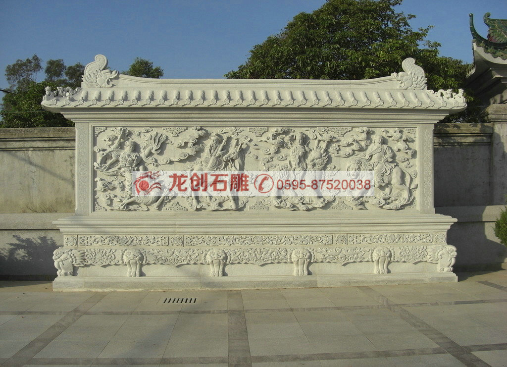 浮雕的空間構造可以是三維的立體形態,也可以兼備某種平面形態;既可以依附于某種載體,又可相對獨立地存在。一般地說來,為適合特定視點的觀賞需要或裝飾需要,浮雕相對圓雕的突出特征是經形體壓縮處理后的二維或平面特性。浮雕與圓雕的不同之處,在于它相對的平面性與立體性。它的空間形態是介于繪畫所具有的二維虛擬空間與圓雕所具有的三維實體空間之間的所謂壓縮空間。壓縮空間限定了浮雕空間的自由發展,在平面背景的依托下,圓雕的實體感減弱了,而更多地采納和利用繪畫及透視學中的虛擬與錯覺來達到表現目的。與圓雕相比,浮雕多按照繪畫原則來處理空間和形體關系。但是,在反映審美意象這一中心追求上,浮雕和圓雕是完全一致,不同的手法形式所顯示的只是某種外表特征。作為雕塑藝術的種類之一,浮雕首先表現出雕塑藝術的一般特征,即它的審美效果不但訴諸視覺而且涉及觸覺。與此同時,它又能很好地發揮繪畫藝術在構圖、題材和空間處理等方面的優勢,表現圓雕所不能表現的內容和對象,譬如事件和人物的背景與環境、敘事情節的連續與轉折、不同時空視角的自由切換、復雜多樣事物的穿插和重疊等。平面上的雕鑿與塑造,使浮雕可以綜合雕塑與繪畫的技術優勢,保持手法上的多樣性和多樣化。二維空間中的透視縮減,陪襯主體形象的背景刻畫或虛擬,使浮雕的塑造語言比之其它雕塑尤其是圓雕,具有更強的敘事性同時也不失一般雕塑的表現性。