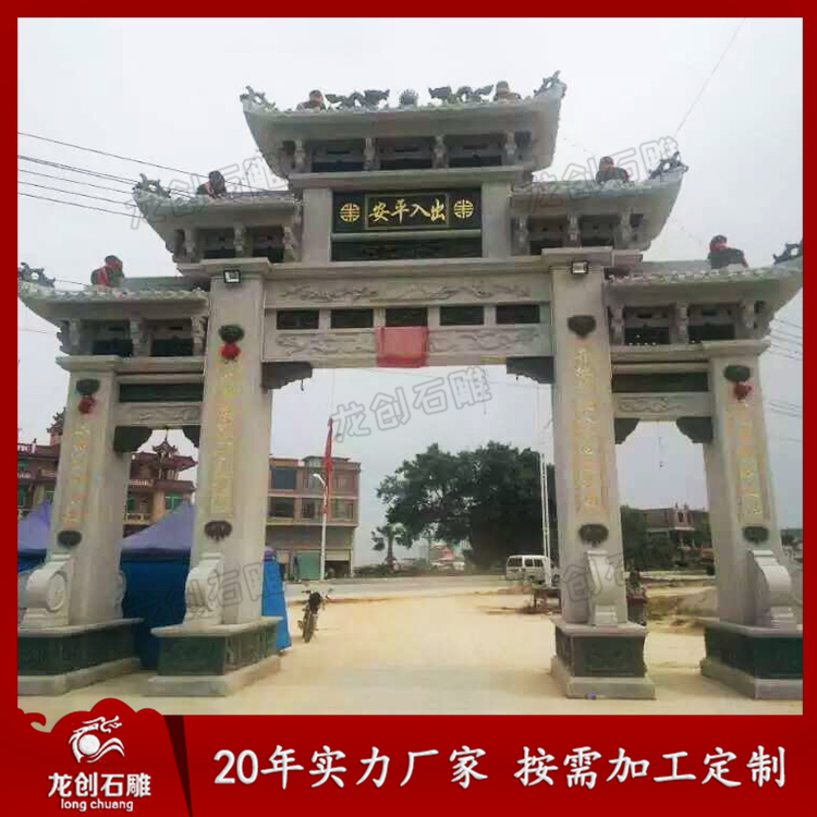 各種各樣的村莊石雕牌坊,讓人感受到了一種和諧繁榮昌盛的文化,村莊牌坊可以美化村容村貌,是農村人精神風貌的一種體現和象征,雖說石牌樓花了點錢,但值得。那就是牌樓的興起是一種盛世祥瑞的象征。也都屬于裝飾類建筑物。這些建筑物的不斷涌現,只能說明如今的農村經濟繁榮、社會穩定、更多的農村人對未來的生活充滿了憧憬。