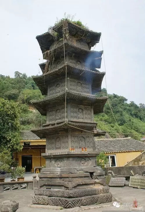 石塔位于浙江省溫州瑞安市隆山鄉(xiāng)周湖村萬松山麓。原名千佛塔,建于北宋熙寧元年到四年(1068~1071)。仿木構(gòu)樓閣式,實心,為葉臘石砌造,平面呈六邊形。原高7層,崐后頂層坍落,現(xiàn)存6層,高7.8米。塔身各層寬度相等,未逐層收縮。除已坍落外,現(xiàn)存大小佛像472尊,均為跏趺坐式。塔身各層各面和部分倚住、木兼柱,以及坐佛須彌座上,刻有宋代題記68條。