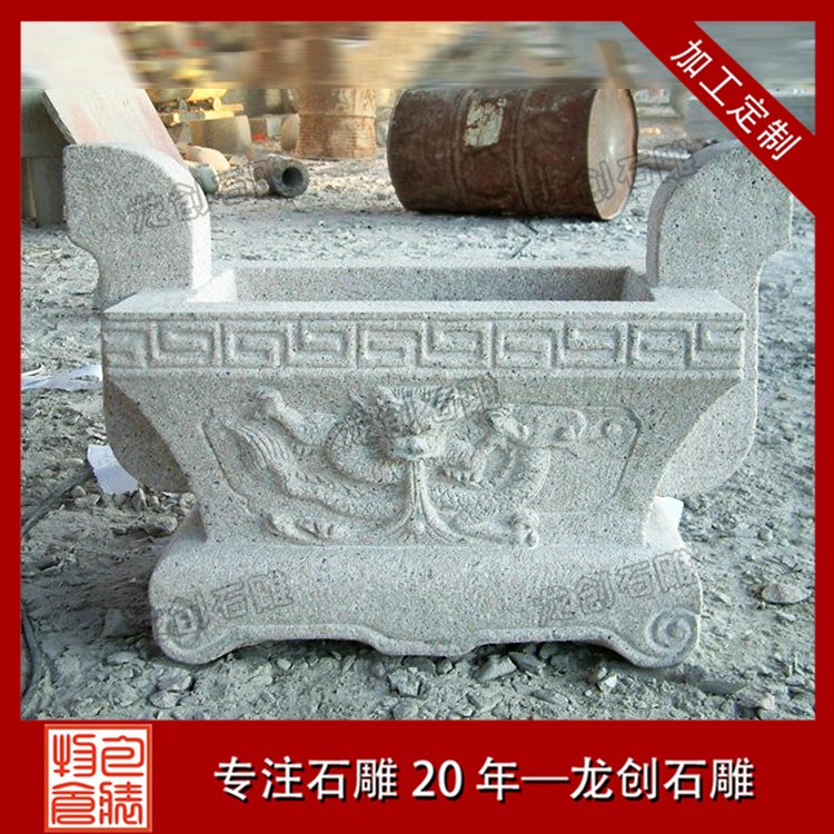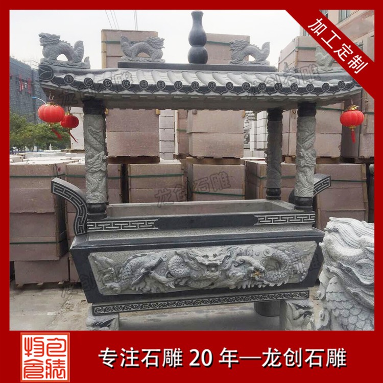 適用場景:花崗巖石雕香爐常用于大型寺廟、佛堂等場合,其堅固耐用的特性能夠經受住風吹雨打,歷久彌新。