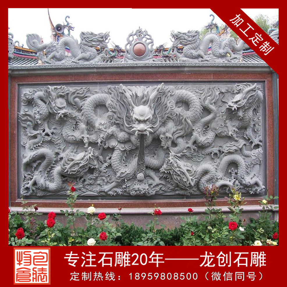 石雕龍壁浮雕不僅僅只能運用寺廟中,它的建筑形式可以創新的地方有很多,能夠發揮更大的價值。我們可以在墻面上以浮雕的形式表現出來,也可以展現壁畫的圖案,雕刻的方式也可以表現出不一樣的感覺。