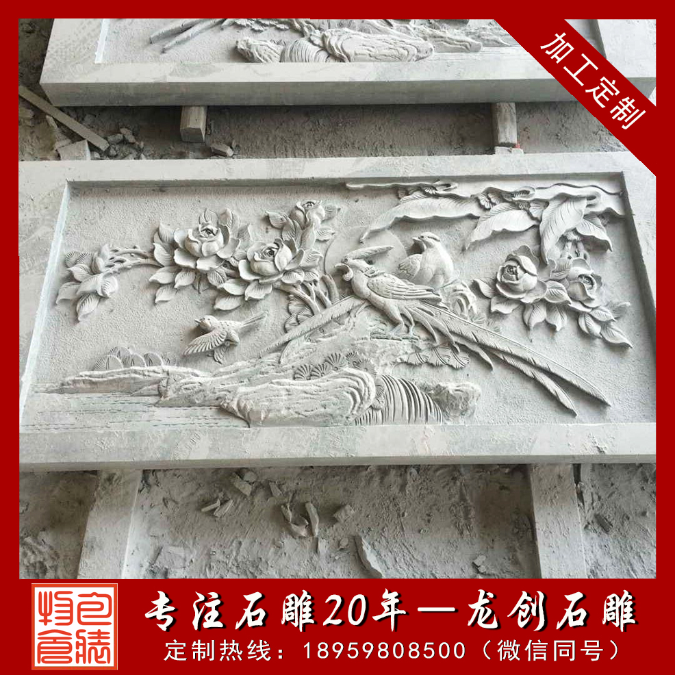 石材浮雕的雕刻技藝和表現體裁與圓雕基本相同。古今很多大型寺廟建筑物和高檔府第、民宅都附有此類裝飾,其主要作品是壁堵、花窗和龍柱(早期)及柱礎等。石雕浮雕厚薄度的選擇一般有所屬物象的性質、雕塑的主題內容、放置位置及光線強弱等因素決定。青石浮雕作為我國傳統建筑中所特有的獨立構建,被廣泛用于不同類型的建筑中,青石是各種石材中最環保的石材,因其取材方便,自然存量巨大,耐磨,耐風化,無輻射。