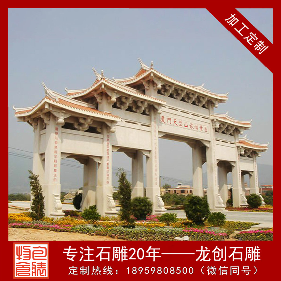 其次,在設(shè)計石雕山門的時候要全面的了解和掌握所蘊含的意義和內(nèi)涵,突出當?shù)氐娘L格特色,石雕山門、花崗巖山門、作為一個建筑群的組成要素,就必須與周圍建筑群的風格相融合,不要與周圍建筑型形成一個布局合理、比例協(xié)調(diào)、望景生情,這一設(shè)計原則也是真正建好一座石雕山門因素之一。第三,在石雕山門設(shè)計的時候,設(shè)計者要根據(jù)石雕山門的風格、造型以及所要表達的情感進行石料的選擇,像漢白玉這樣的石料比較適合用在一些重要的場所。