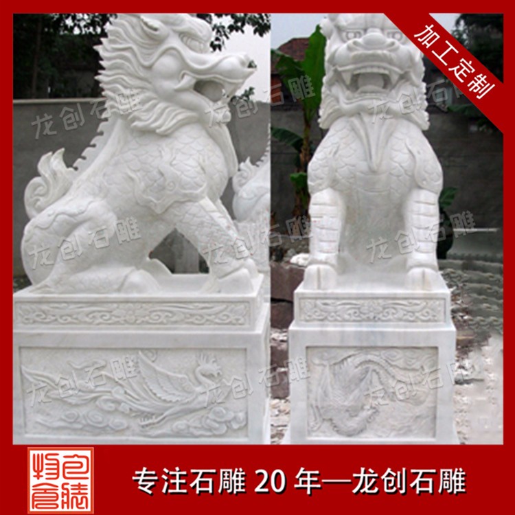 漢白玉麒麟石雕廠家雕刻一對優質的漢白玉麒麟應當具備以下特征: