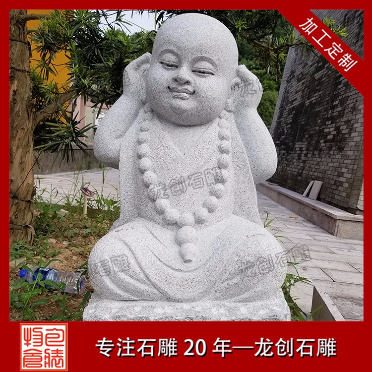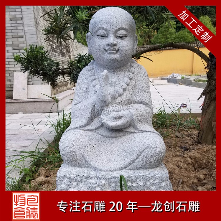石雕小沙彌是從小就進入寺院修煉佛法的孩子,俗稱小和尚。小和尚憨態(tài)可愛,在修習佛法的日常生活中,無憂無慮、懵懂、趣味的生活形態(tài)被人們以石雕的形式記錄下來,讓人們感受到小孩子的無邪與活潑。我們龍創(chuàng)石雕雕刻出來的石雕小沙彌可愛呆萌的形象而逗人一笑。