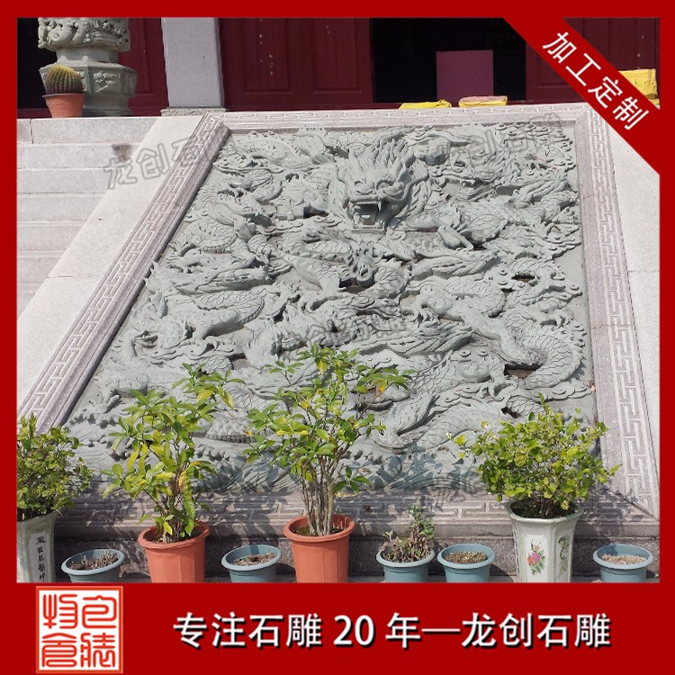 寺廟龍浮雕是我國特有的建筑形式,有一龍壁、三龍壁、五龍壁、七龍壁、九龍壁等多種形式,而以九龍壁zui為尊貴。九龍壁通常建在帝后、王公居住或經常出入的宮殿、王府、寺院等建筑正門的對面,是我國照壁建筑的進一步發展。九龍壁石雕浮雕壁畫常見于寺廟、廣場、政府等各場地。