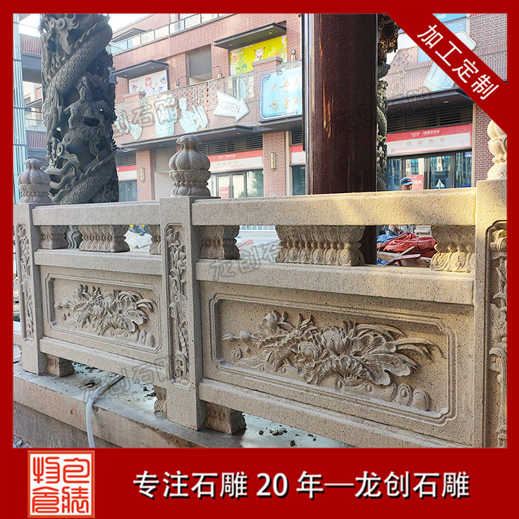 花崗巖石欄桿的報價都是比較實惠的,在預算石欄桿價格的時候要與欄桿的雕刻圖案考慮。在花崗巖石欄桿圖片中有不少關于石欄桿的雕刻設計介紹,石欄桿在經過了朝代的更替和演變后,其實在設計上也都很好地展示了藝術魅力,尤其是在花崗巖石欄桿的雕刻上,更有多樣化的設計講究。如河道石欄桿 一般雕刻植物或者鏤空,而寺院一般雕刻八寶、蓮花、佛像等。