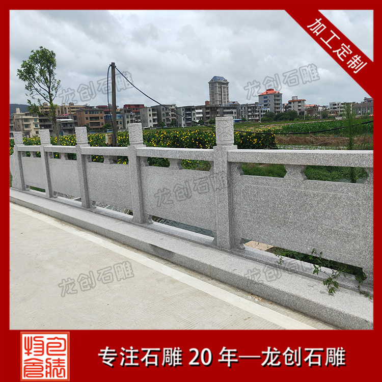花崗巖欄桿選用優(yōu)質(zhì)天然花崗巖石材。常用的有芝麻白、芝麻灰、白麻、黃銹石、五蓮紅、五蓮花。花崗巖石欄桿是比較常用的欄桿材質(zhì)。其硬度高、抗風(fēng)化、后期基本無需打理。多用于河道、橋梁、景區(qū)等。石材顏色多樣,可選度高。常用做法為線雕、鏤空、浮雕。