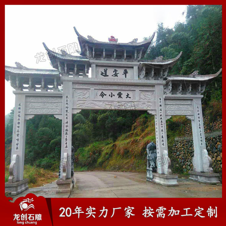 村口牌坊牌樓石雕的興起是一種盛世的象征。村口石牌樓體現(xiàn)了農(nóng)村經(jīng)濟(jì)繁榮、設(shè)施完善、環(huán)境優(yōu)美、文明和諧的社會(huì)主義新農(nóng)村的核心價(jià)值,這也是社會(huì)主義新農(nóng)村建設(shè)的成功見證之一。