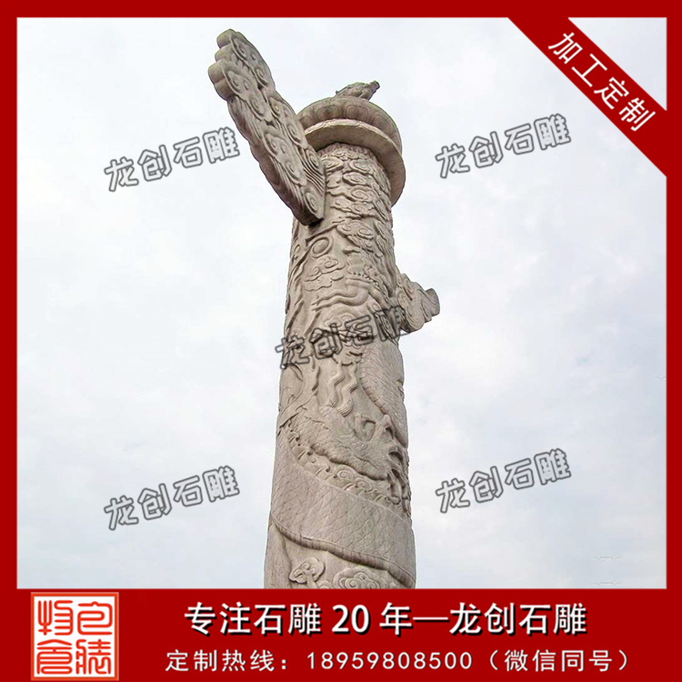 石雕中華柱(石雕華表)是古代宮殿、陵墓等大型建筑物前面做裝飾用的巨大石柱,是中國一種傳統(tǒng)的建筑形式。相傳華表既有道路標(biāo)志的作用,又有為過路行人留言的作用,在原始社會(huì)的堯舜時(shí)代就出現(xiàn)了,具有歷史悠久的特點(diǎn)。