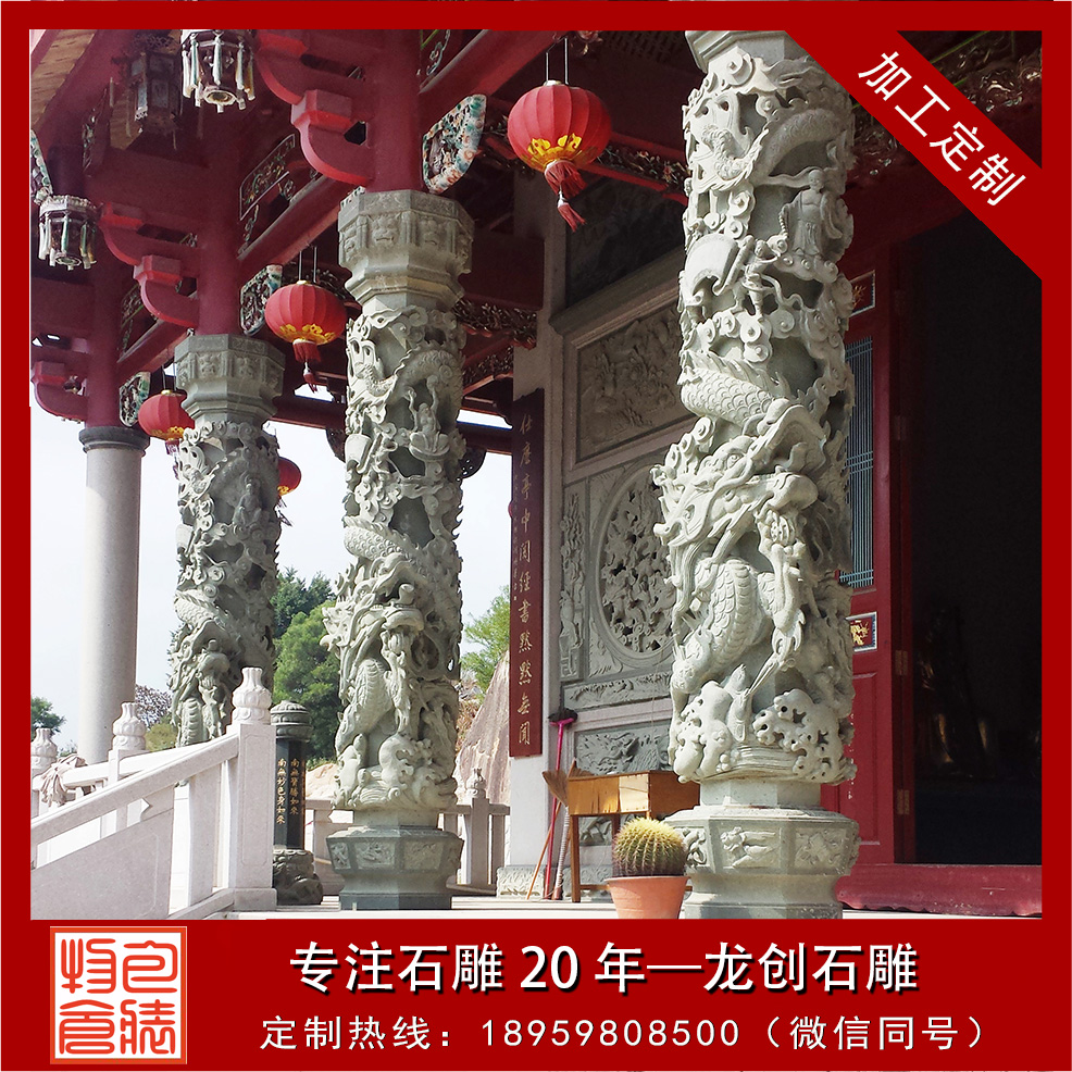 石雕龍柱作為工藝美術的重要門類之一,龍自然是重要的以至是主宰一切創作內容。時至今日,我們尚無牢靠查獲的材料供以研討石雕蟠龍柱在石雕開端于史何年何代,我們只能就目前所能查詢的石雕能柱和遺存廢物來做詳細剖析,依據目前控制的廢物查料,能夠推斷蟠龍石柱的呈現,大致是在宋以后,而現存寺院內的石雕龍柱,從其姿勢剖析,大多是明、清代的作品,其中尤以清代作品居多。現在哪里有石雕龍柱出售?石雕龍柱生產廠家龍創石雕為您解答。