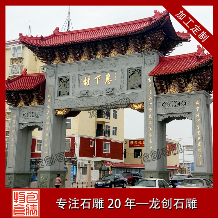 村頭石牌樓制作材質有青石、花崗巖、大理石等,樣式有單門、三門、五門,三樓、五樓、七樓等,雕刻的圖案也是多種多樣,因此村頭石牌樓價格沒有一定的,預算多可選擇的樣式也就多,大理石牌樓價格,請致電我司咨詢,我們會給您一個專業的報價。