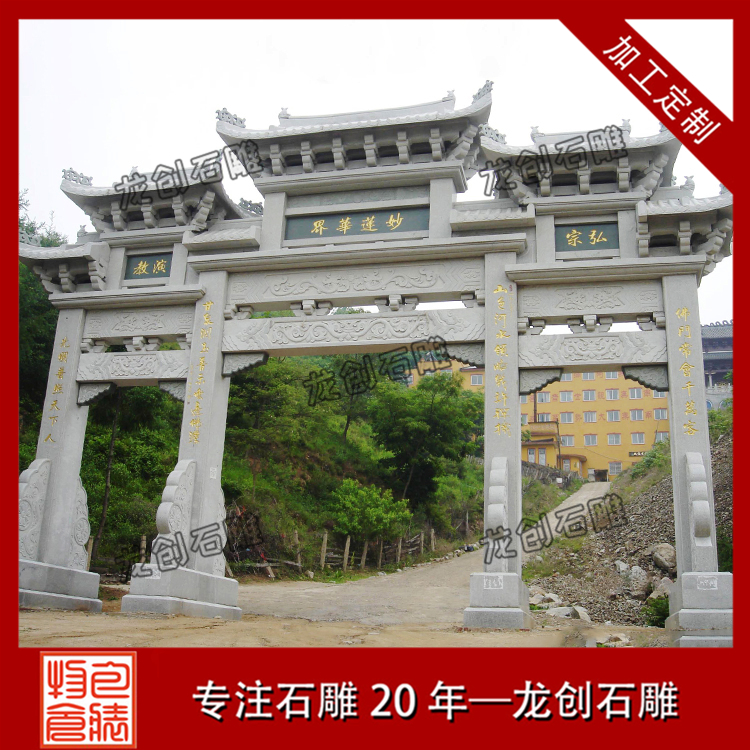 花崗巖石牌樓廠家龍創石雕生產的石牌樓古樸典雅、新穎美觀,無論人物或動物都栩栩如生,成為提升形象、營造古典文化的一大特色。我廠專業制作設計各種石牌樓,青石牌樓定制,在石雕行業中有著專業的技術團隊,可以為每一個地方設計出具有他們當地文化的石牌樓,龍創石雕全體員工熱誠歡迎您前來參觀。